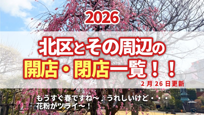 北区で1月に「閉店」した主なお店まとめ