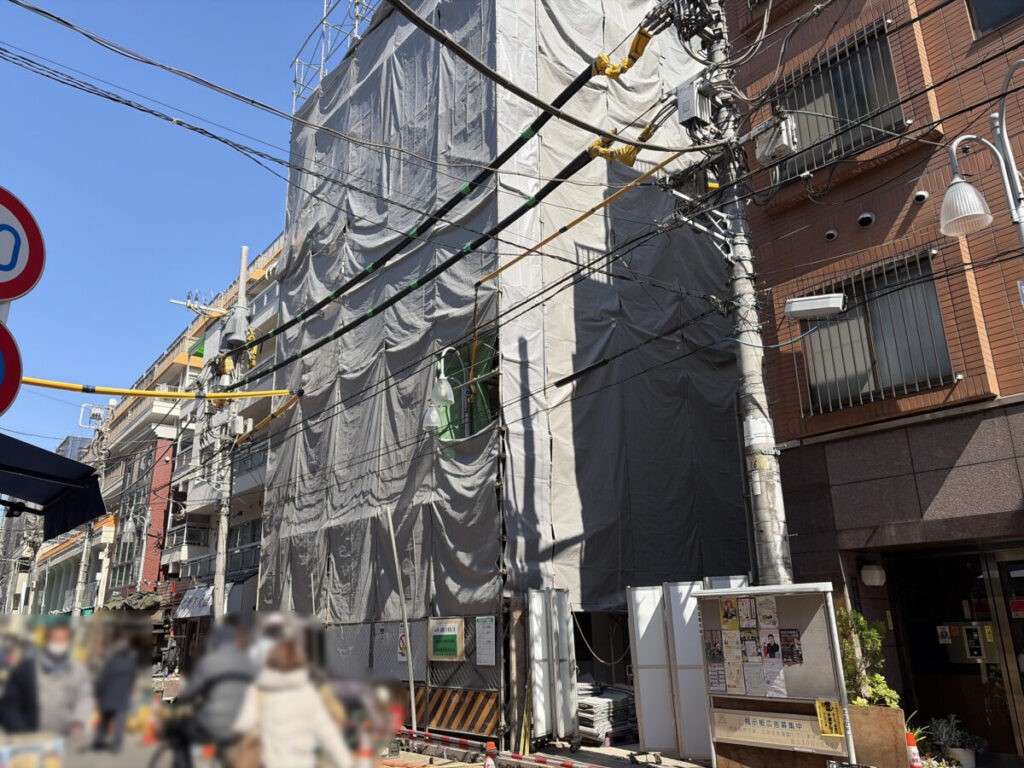 【北区】「蛇の目赤羽ビル」がすっかり工事の囲いで覆われてます。解体工事は7月31日までの予定!