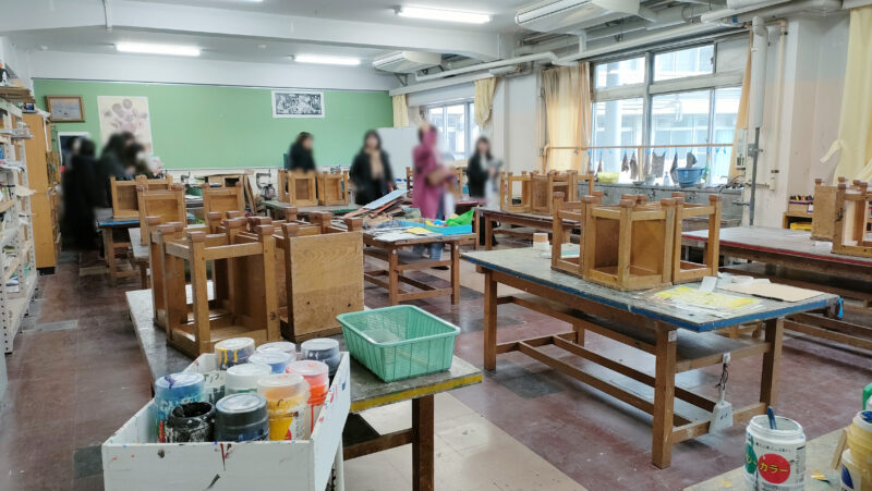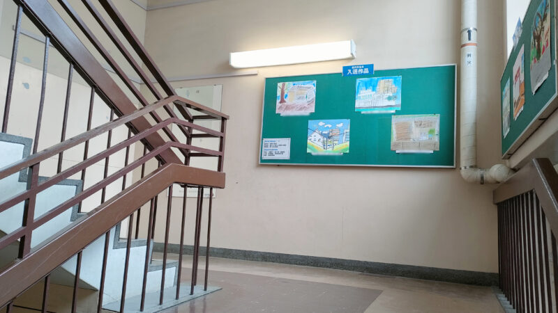 最後は廊下にたくさんの絵が飾られている、図工室を見てみるよ!