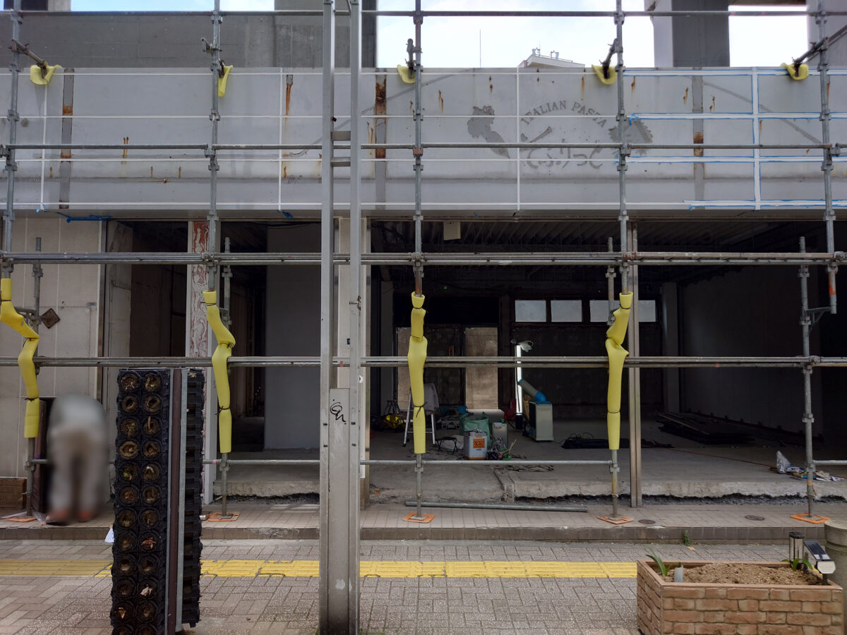 何を作ってるのでしょうか?そふりっとの看板の跡?がまだうっすら残ってます。