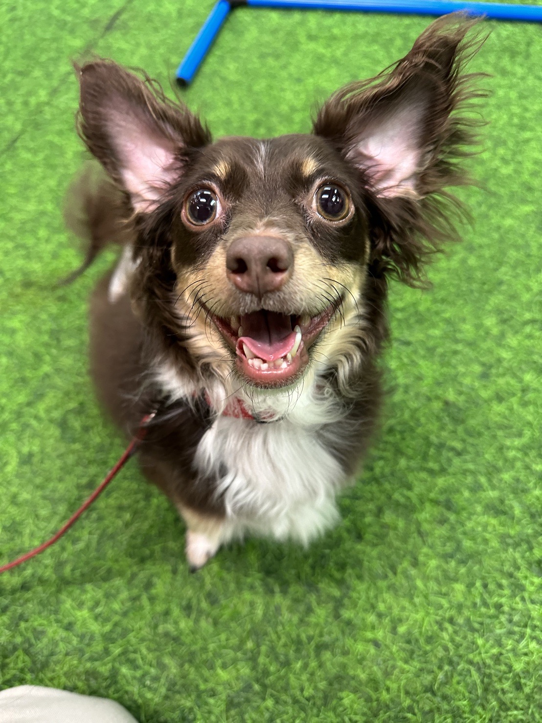 ご自慢ポイント   :いつも元気なちょっと大きめチワックス!好き嫌いもないからおやつ見るとすぐ飛びついちゃう…散歩苦手だけど、散歩中に女性の方が通ると歩くスピード早くなって追いかけちゃうょ
