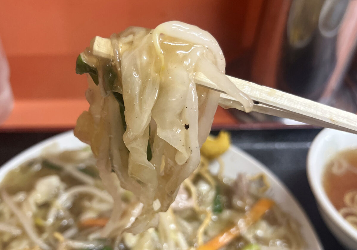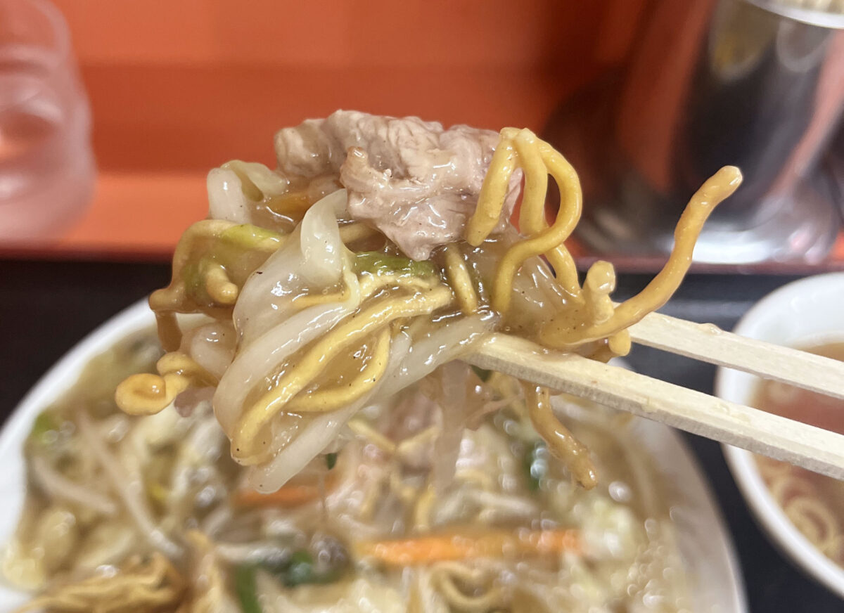 餡の下に埋まっている麺は、汁気を吸ってどんどんやわやわに。