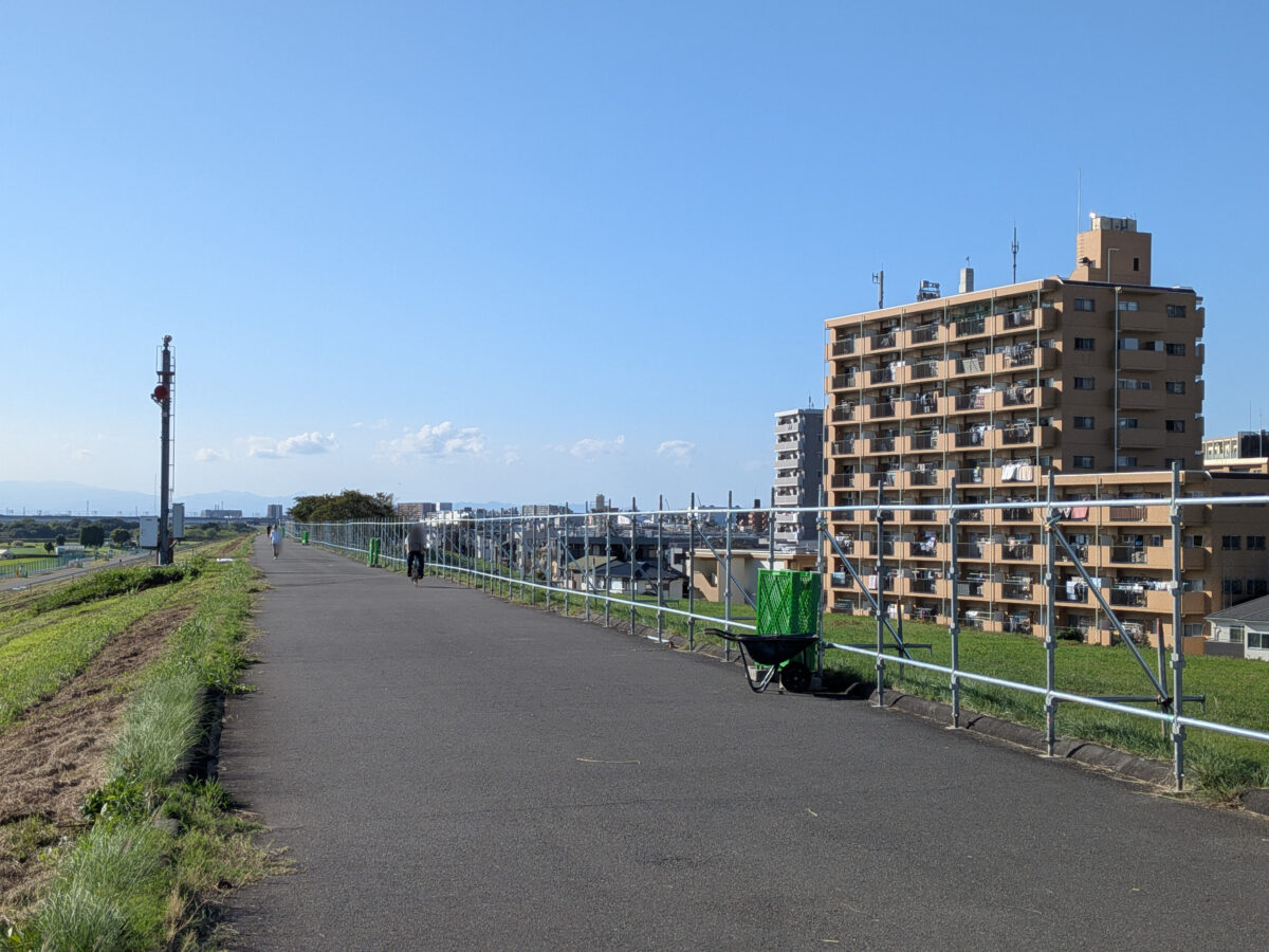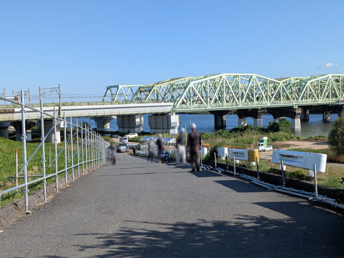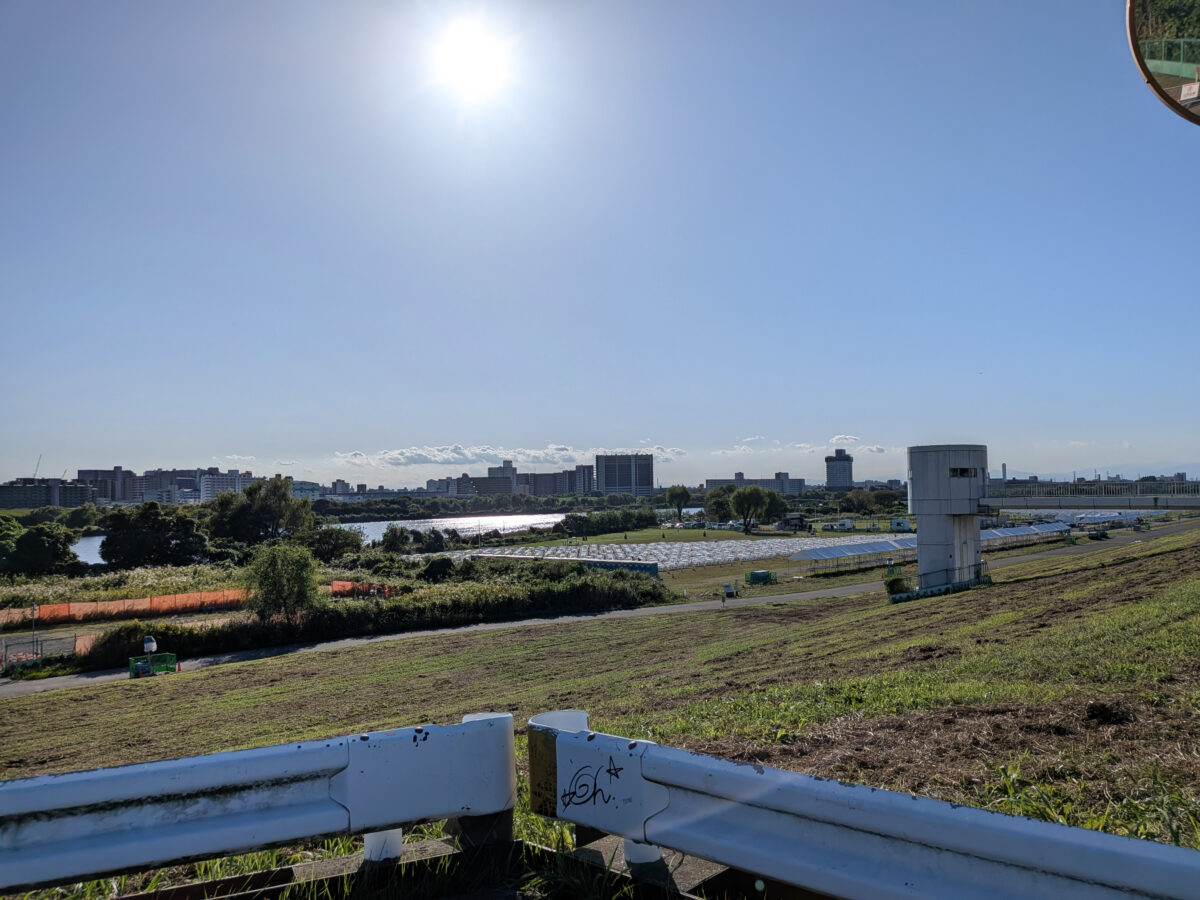 まずは、飛鳥ドライビングカレッジの前を通って荒川土手へ。京浜東北線の陸橋のすぐそば、