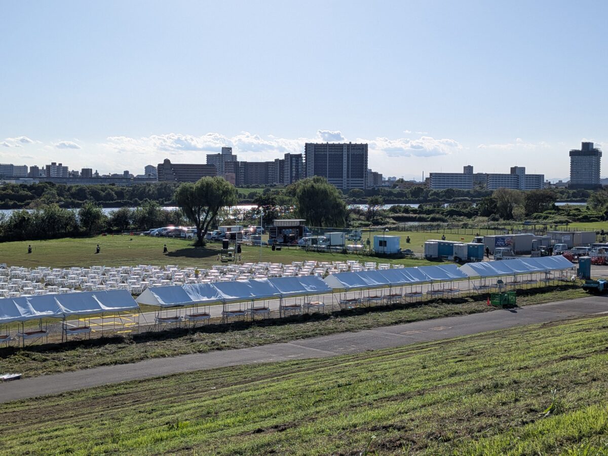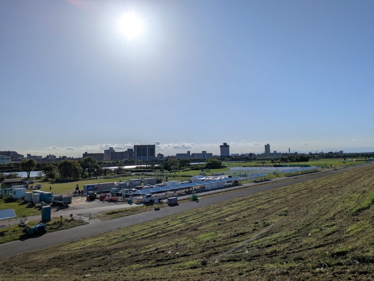 ではでは、土手の上から会場を見てみます。