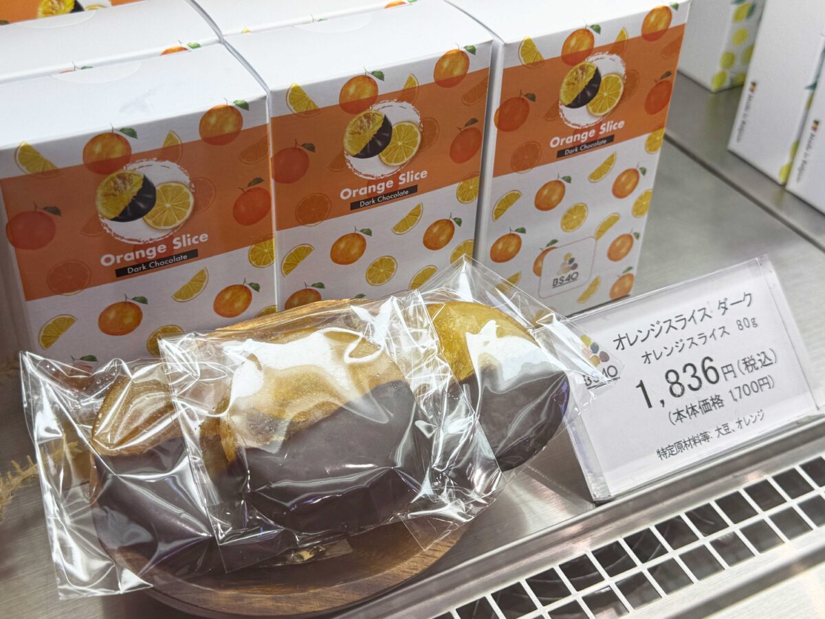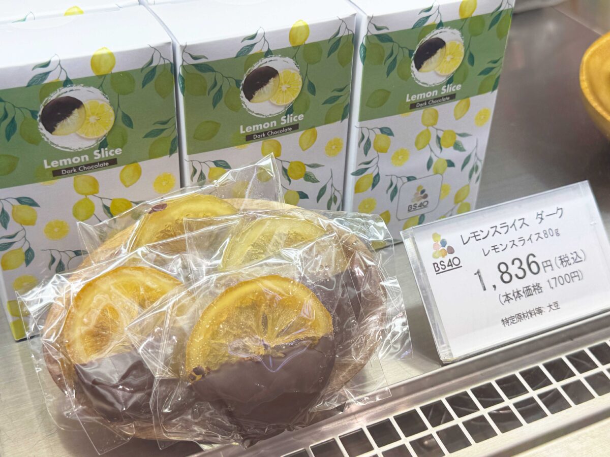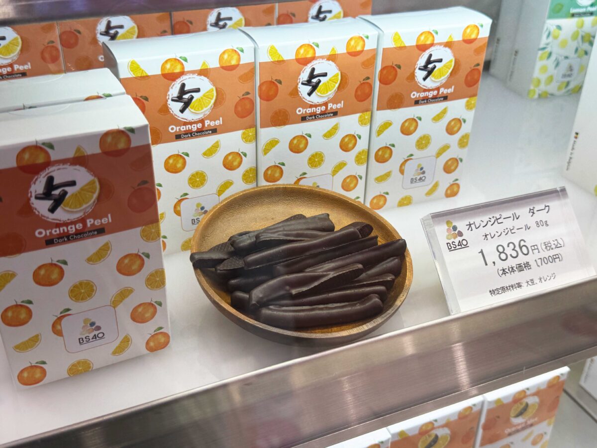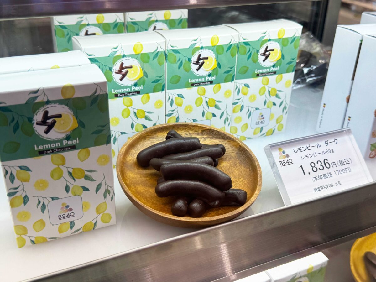 冷蔵ショーケースのほうを覗いてみると、オレンジピールとレモンピールのチョコがけが!