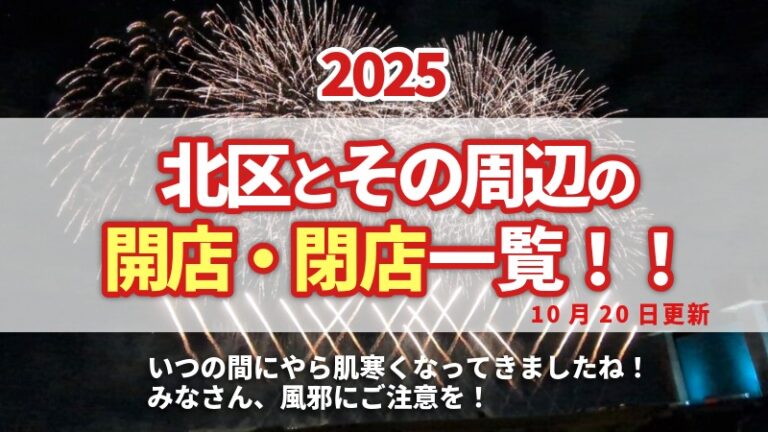 2025年 北区とその周辺の開店・閉店一覧!*10月20日 更新2025年の北区とその周辺で開店・閉店したお店を記録していきます。 基本は赤羽マガジンに掲載した記事を...