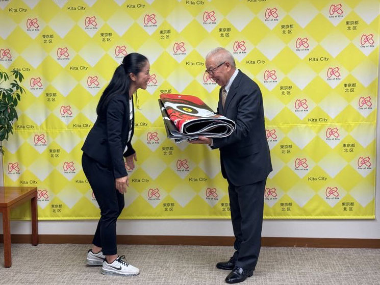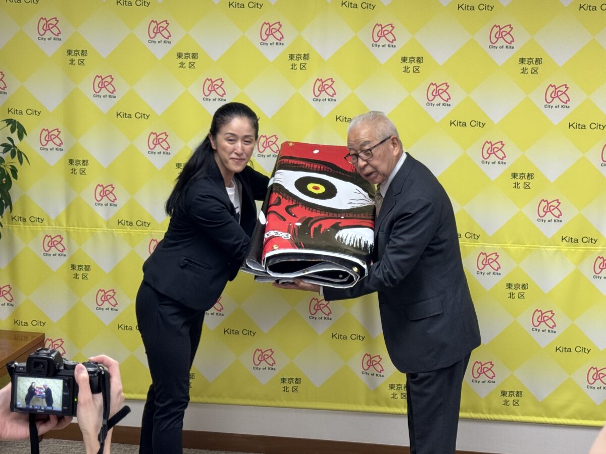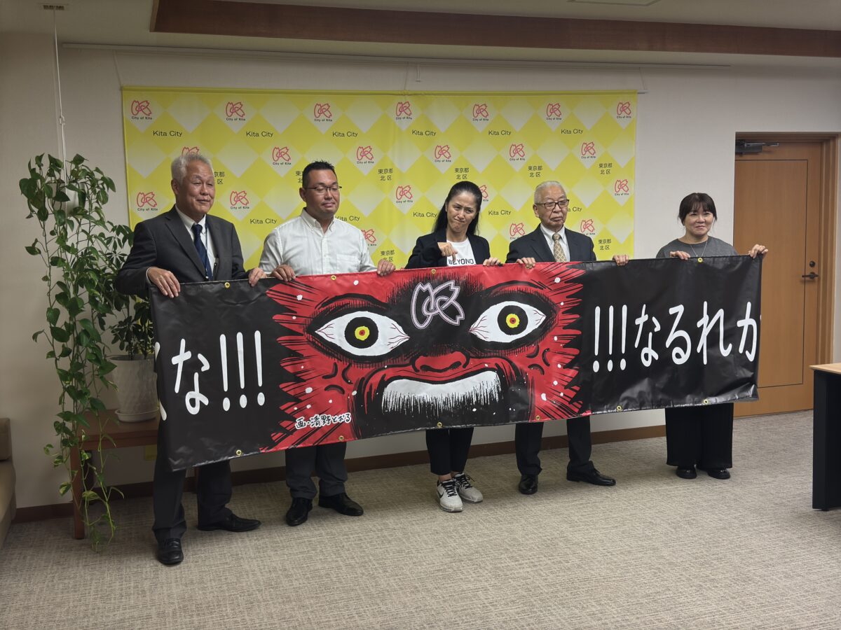 赤羽一番街に客引き防止を促す巨大な横断幕が設置されるようです!つい先ほど、北区役所の区長室で、贈呈式が執り行われました。