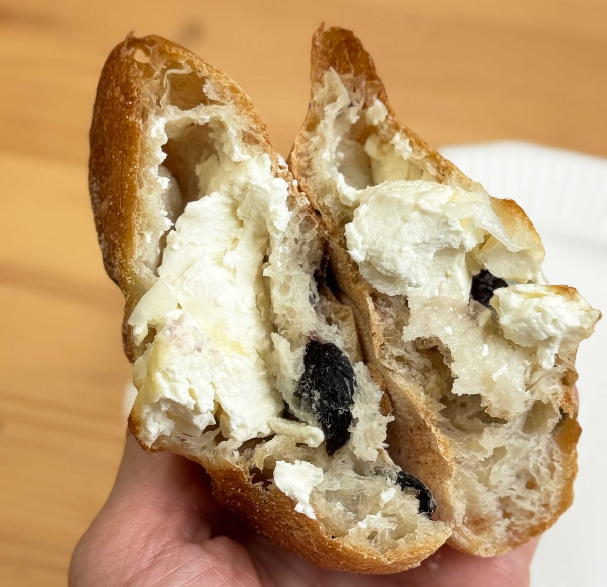 半分に割ってみると、見て〜!クリームチーズがたくさん入ってる〜!