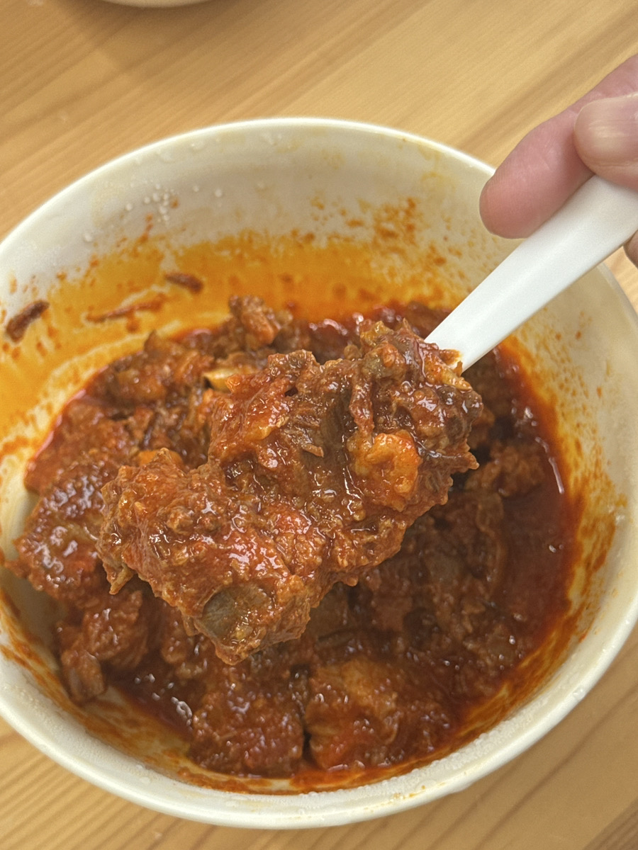 お肉柔らか〜!辛口の煮込みは、ニンニクやら香辛料がブワッと押し寄せてきて、その後心地いい辛みが!