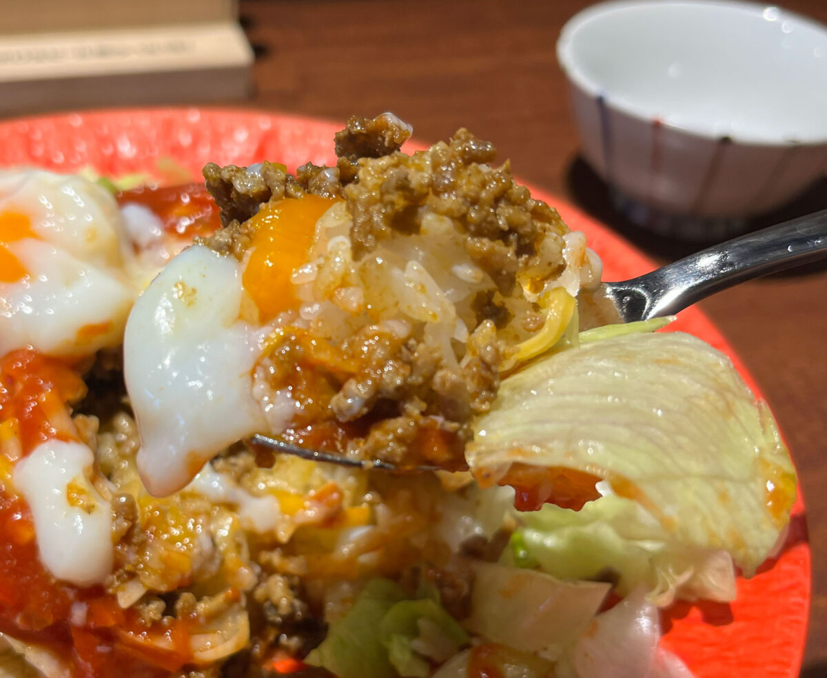 ピリリと辛くて肉肉しいタコライス、やみつきになりましたよ…!!
