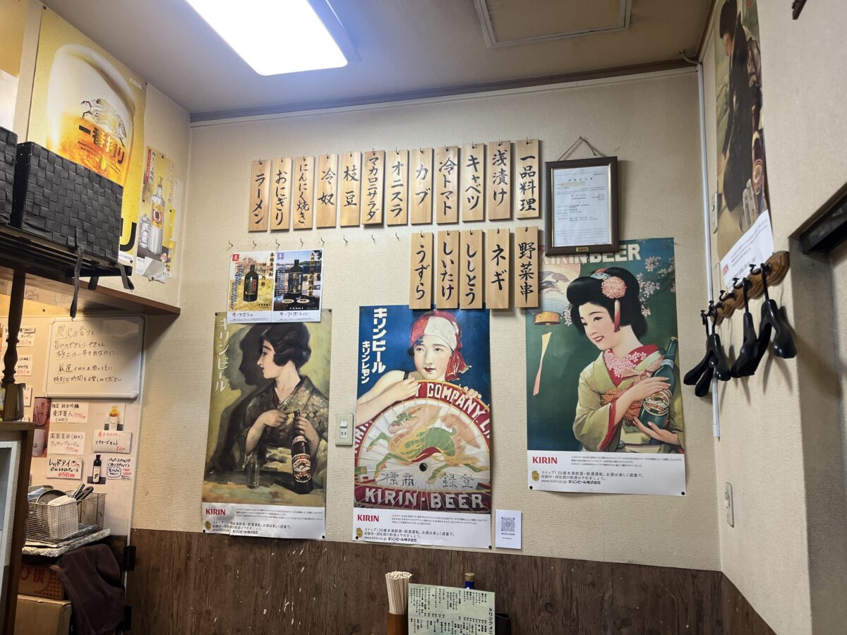 壁に貼ってあるポスターや短冊メニューが、渋い空気を醸し出しております。