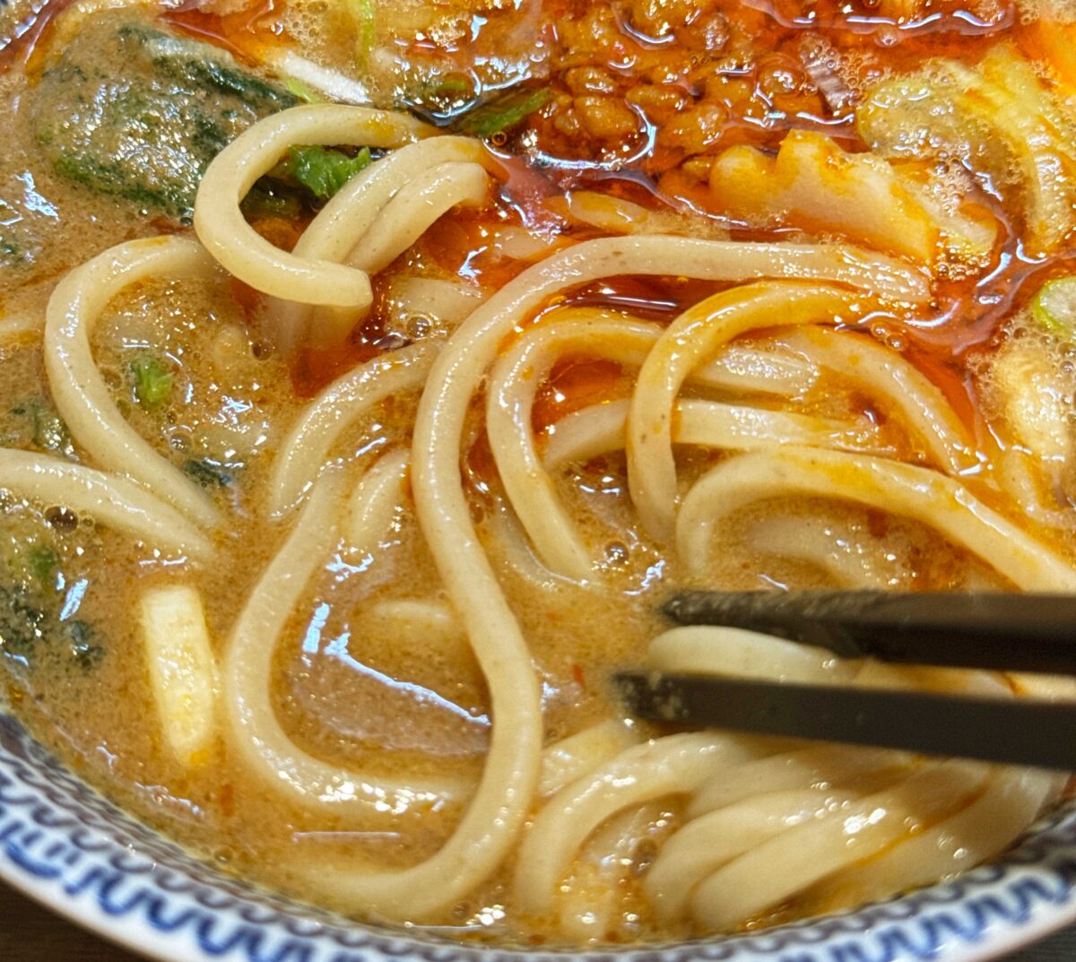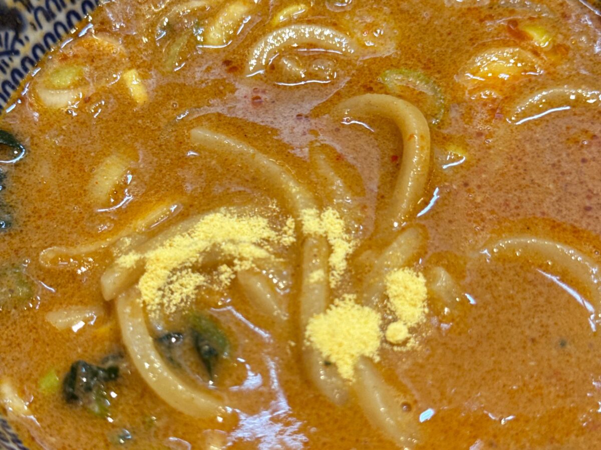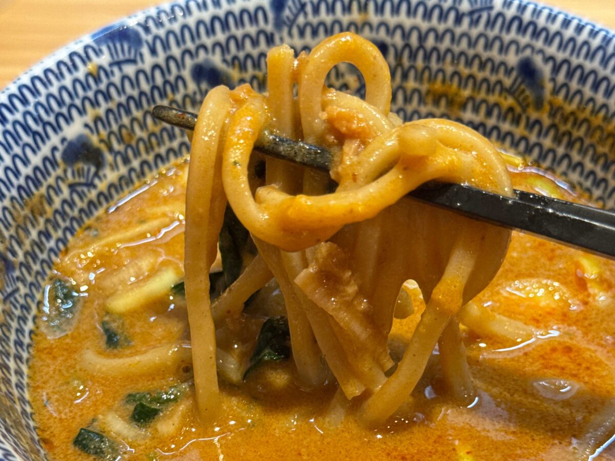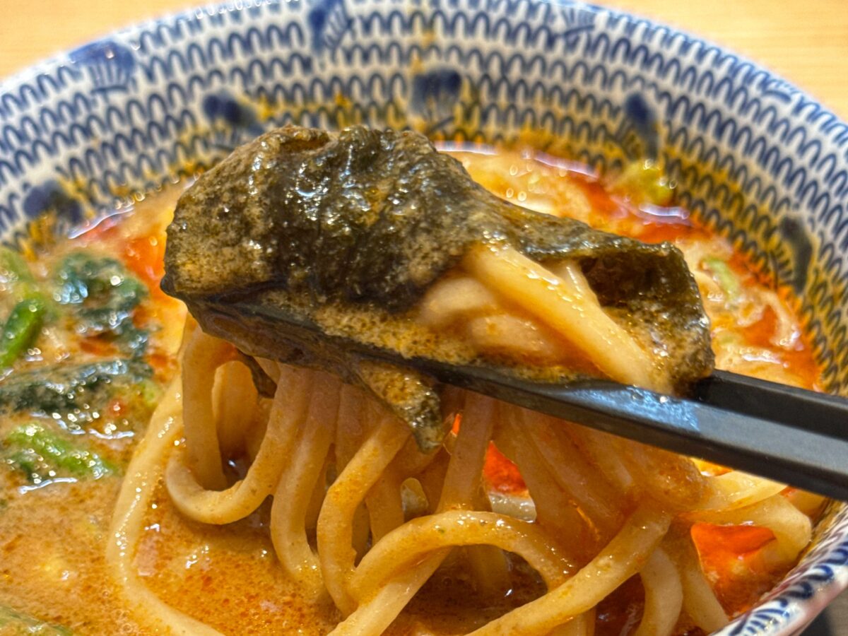 スープにくぐらせて一気にすすれば、ゴマの香りがぶわぁ〜っと口の中に押し寄せる〜!