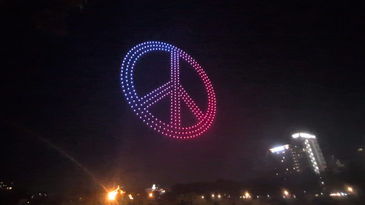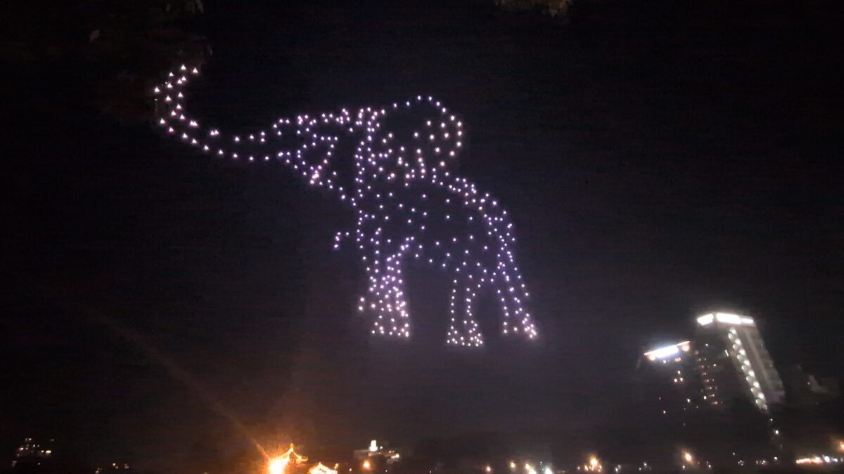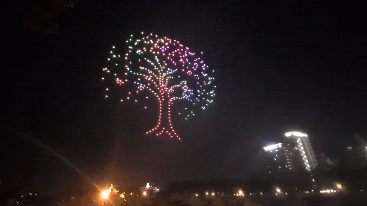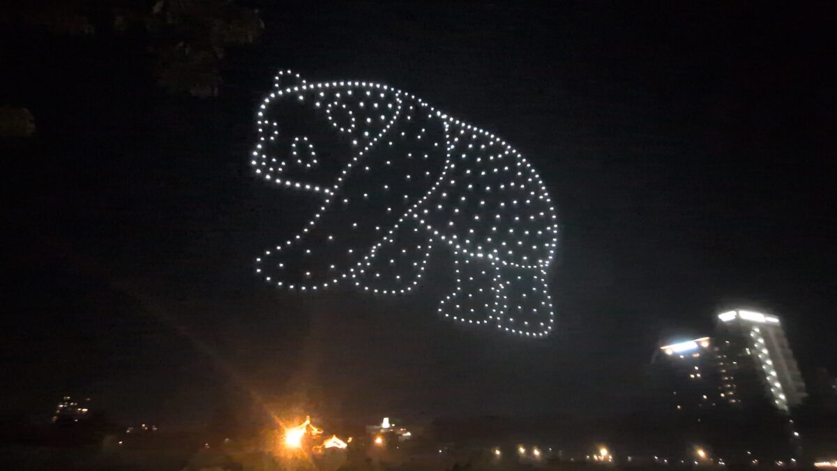 上野公園の不忍池周辺で開催されたドローンショーの様子です。