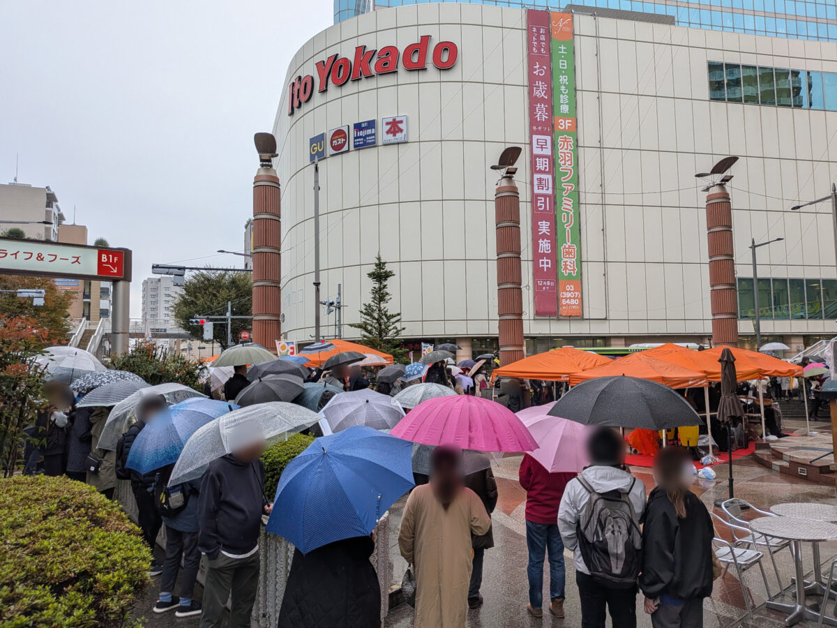 赤羽西口駅前、100人はゆうに超えてる大行列&人、人、人なう。