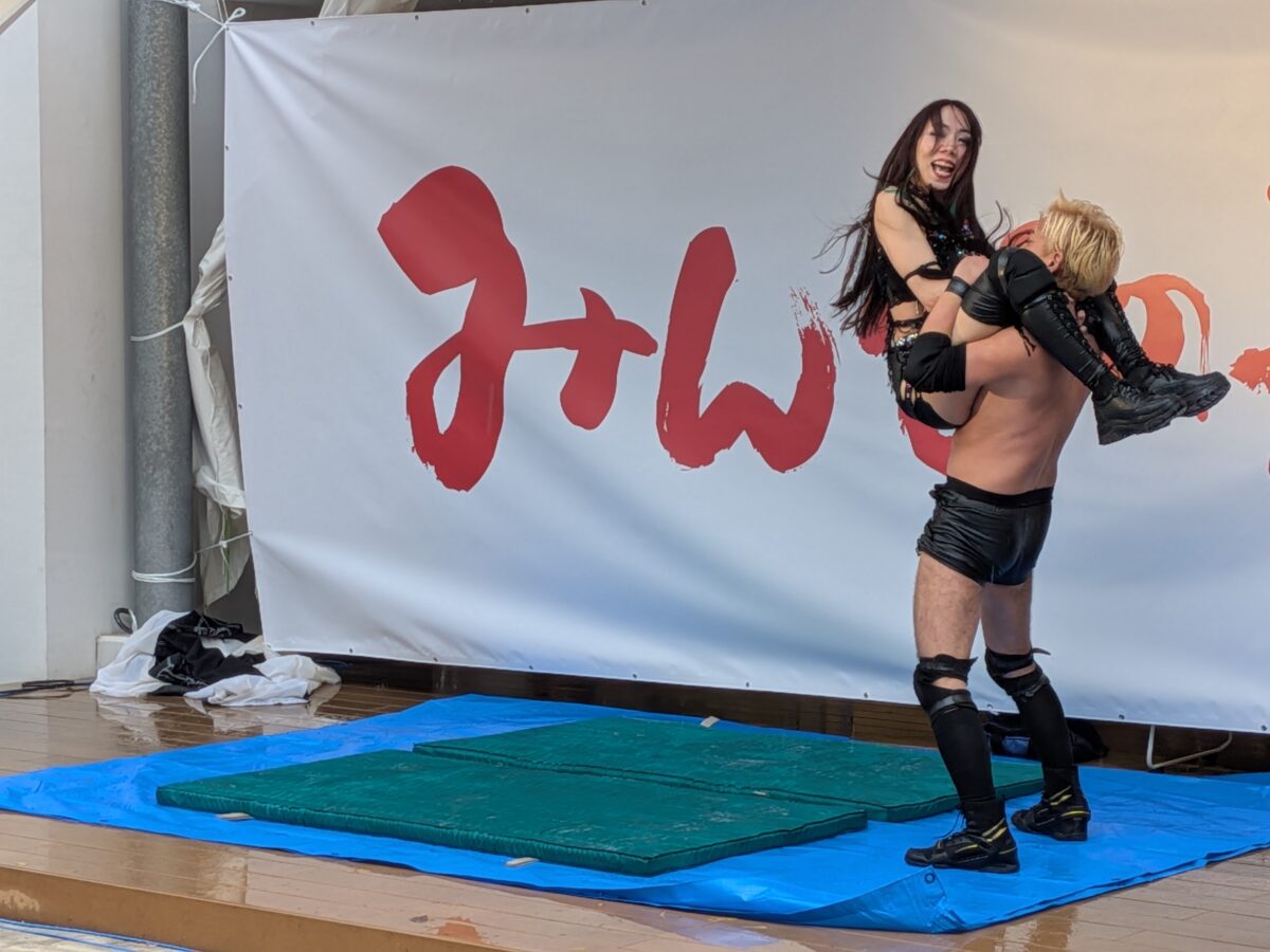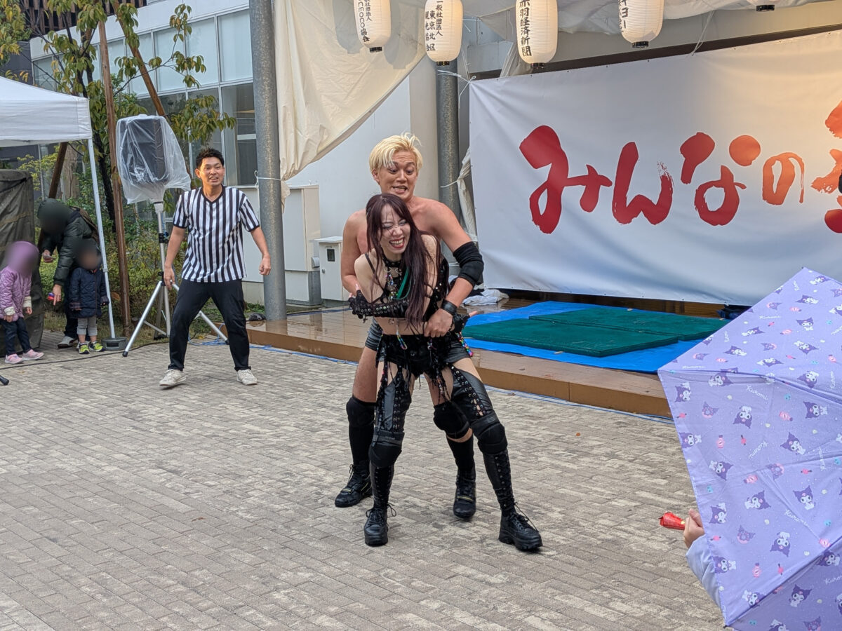 ちょうどステージでは、エンターテイメント・プロレスがはじまるところ。