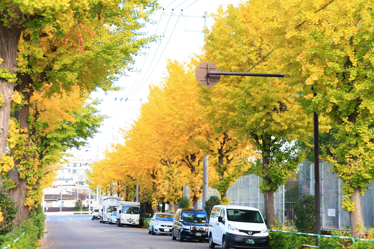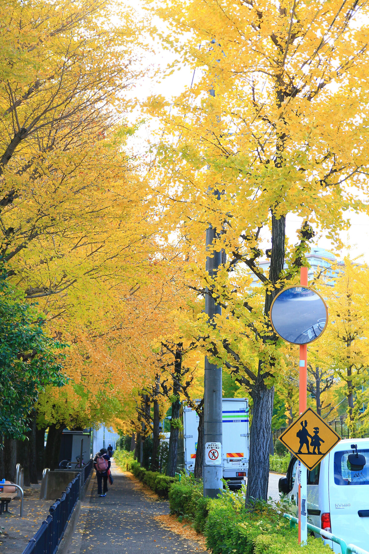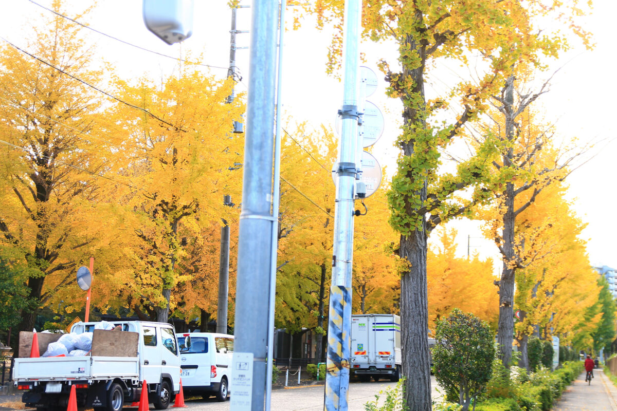 緑がかってるところもありますが、きれいな黄葉のイチョウ並木。