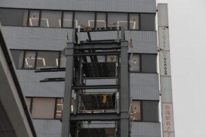 田端駅前につくってるエレベーターの様子。骨格が見えた!