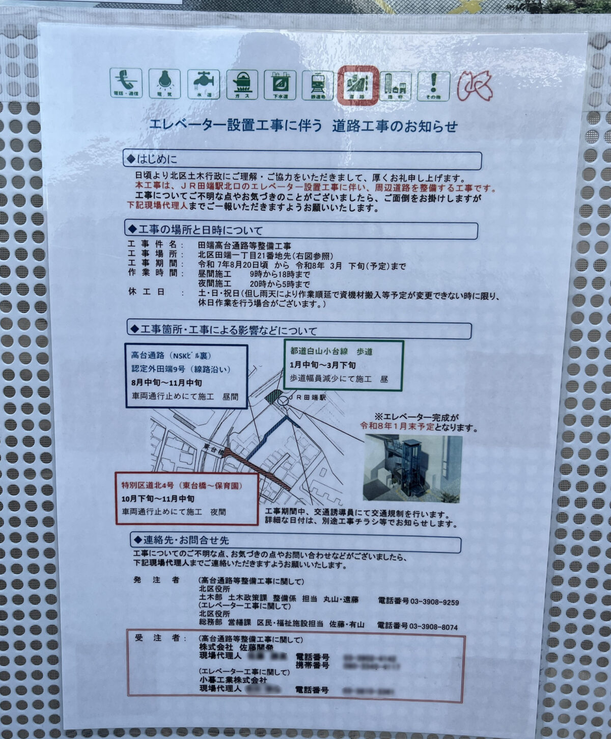 田端駅北口近くに15人乗りのエレベーターが出来るようです。