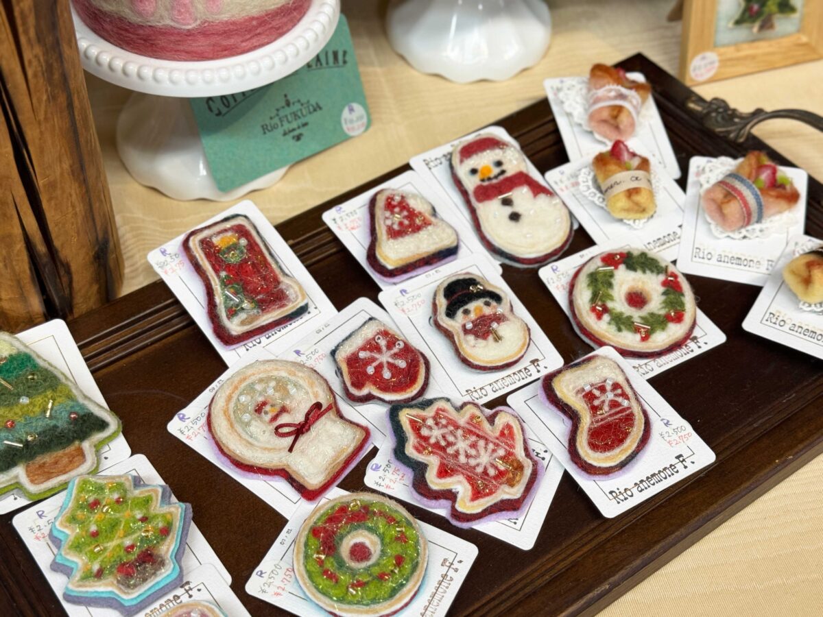 あたたかみを感じる、羊毛フェルトで作られた作品達が並んでいますよ!