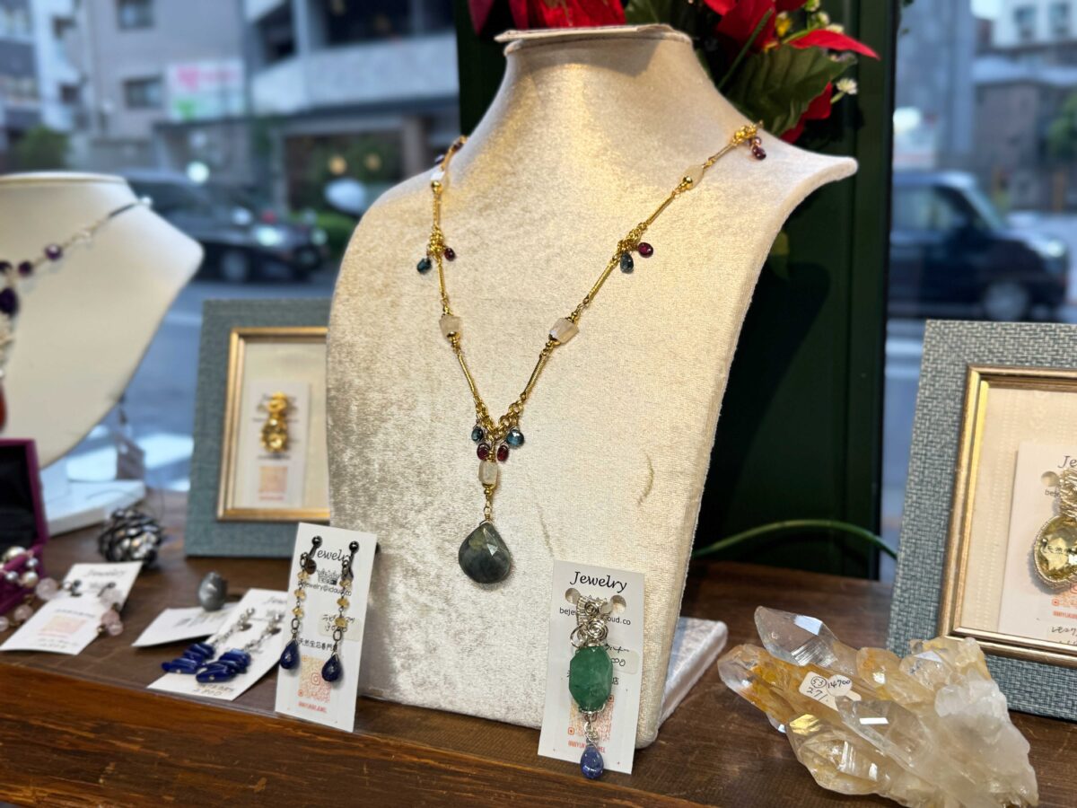 天然石のワイヤーアートで作られたペンダントトップがずらり。