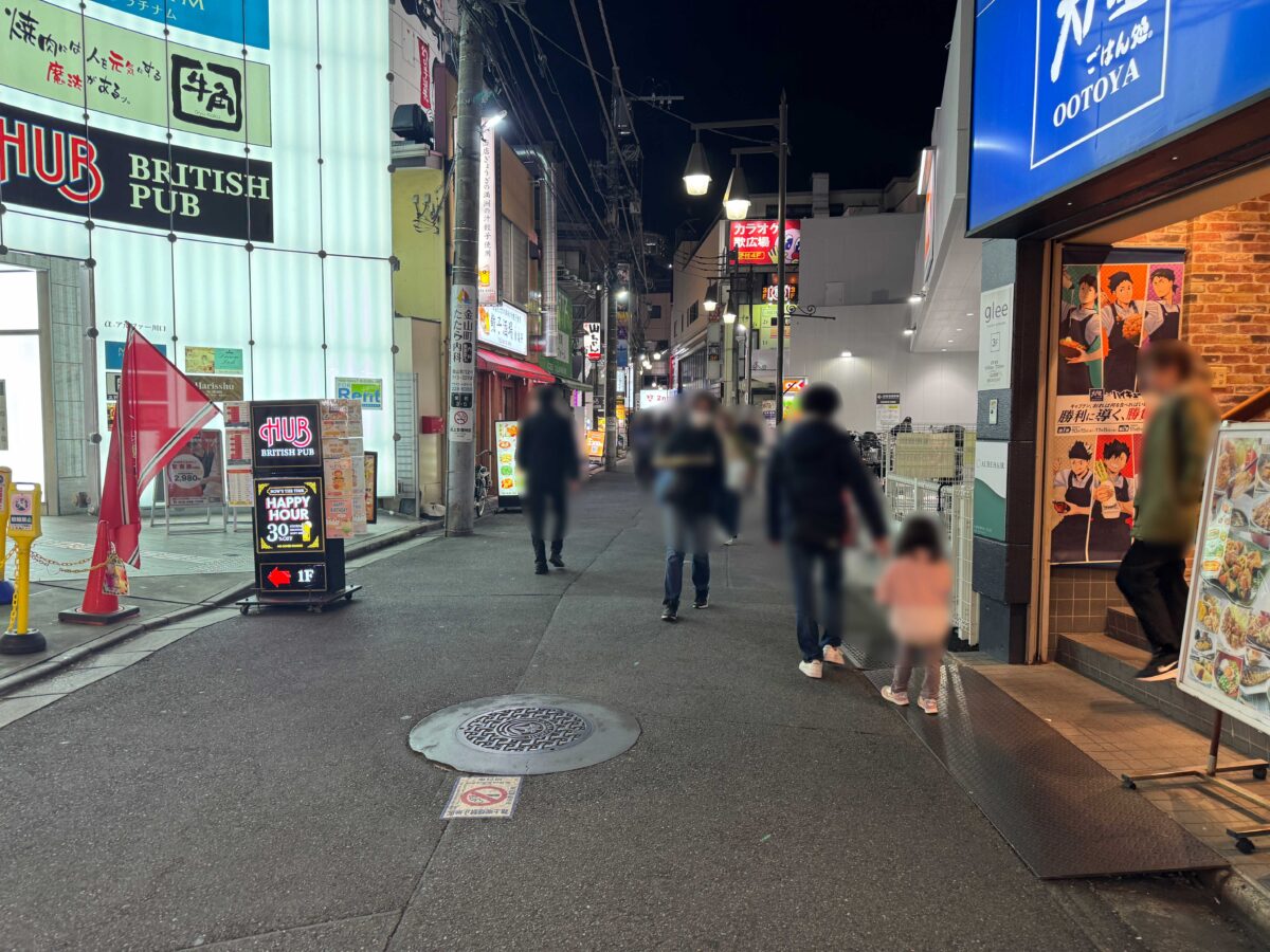 左です。こっちへ行くと「食楽亭」や、「オーケー 川口栄町店」などがあります。