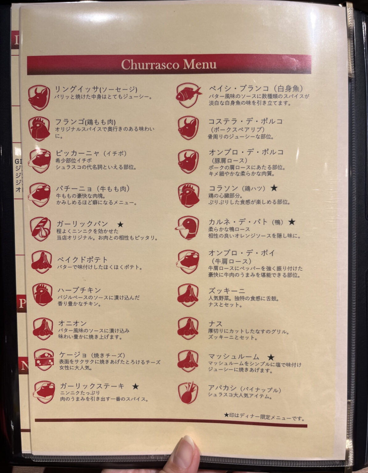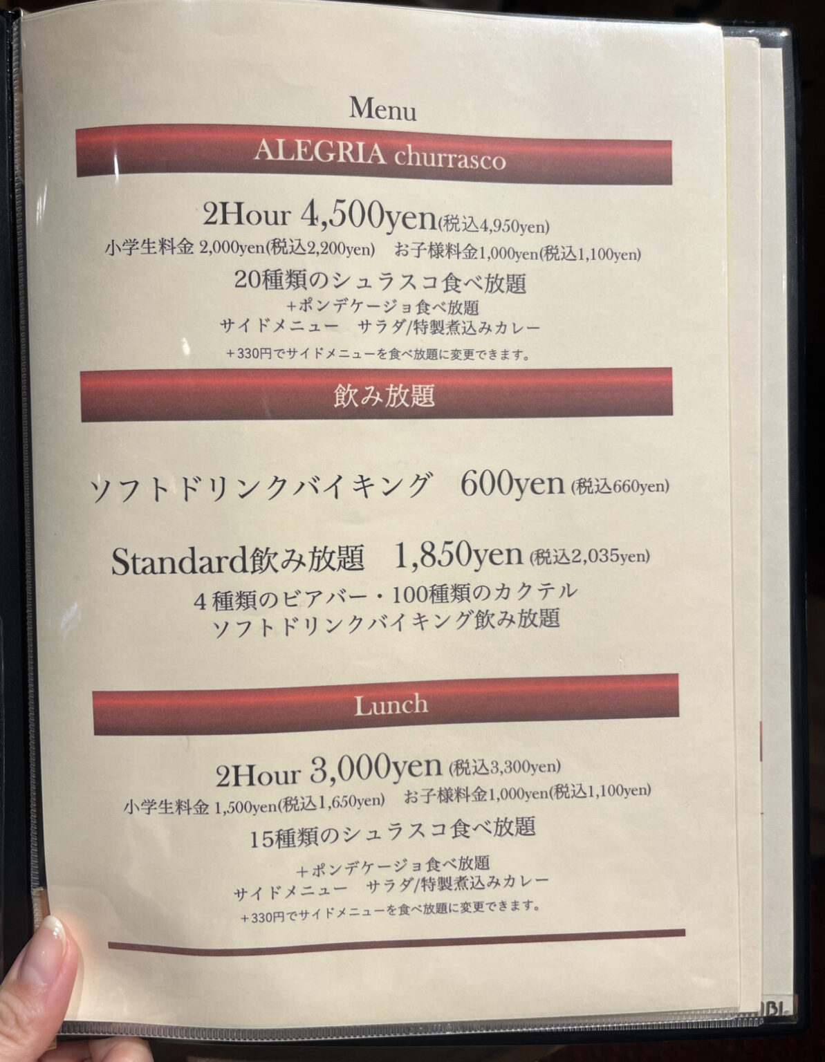シュラスコ食べ放題のメニューも置いてありました。