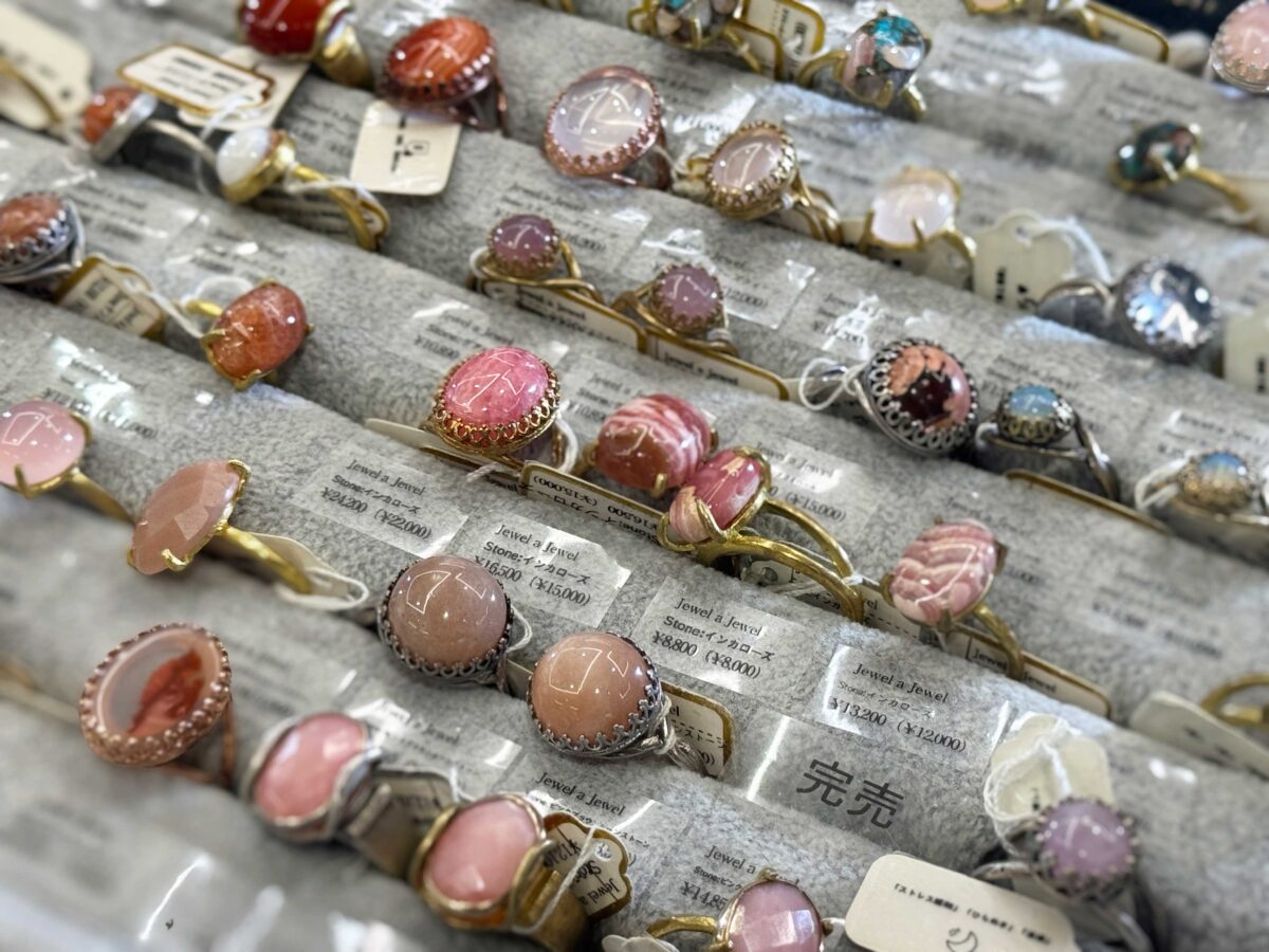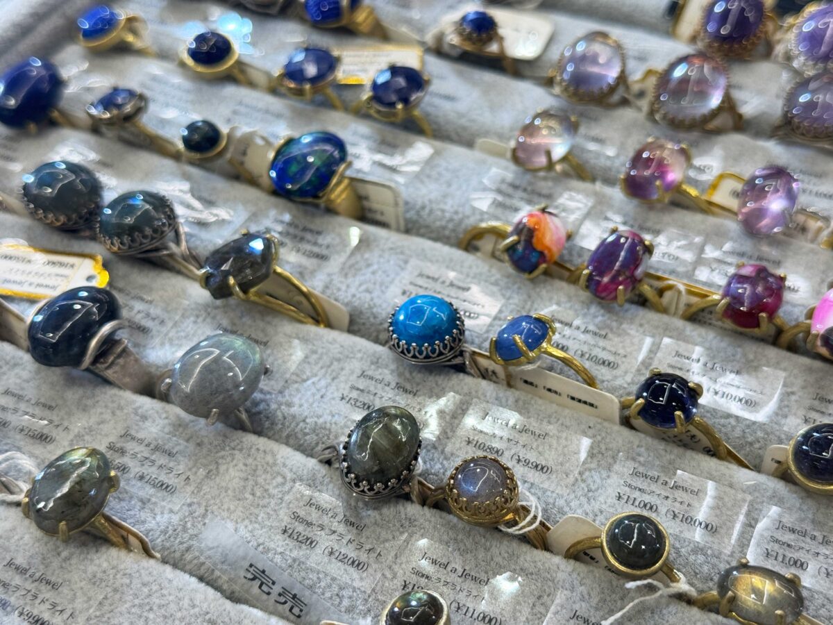 うわぁ〜!カラフルな天然石のリングがずらりと並んでいるではありませんか!