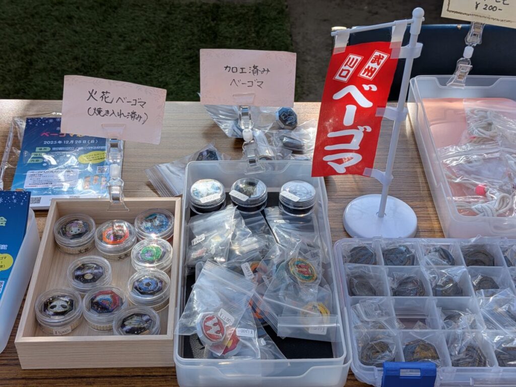 入口のところに、最近流行してる川口のベーゴマが売ってました!火花が散るベーゴマもあるんだ。