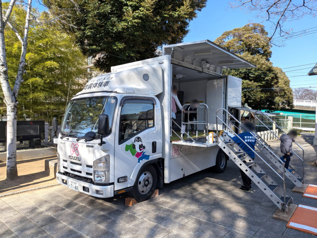 地震体験車が来てました。最近地震多いし、今度子どもと一緒に体験したいな。