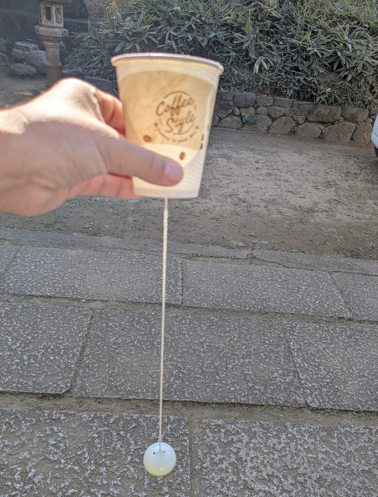 こちらはコーヒーカップとくら寿司の「ビッくらポン!」でつくって手作りのけん玉。
