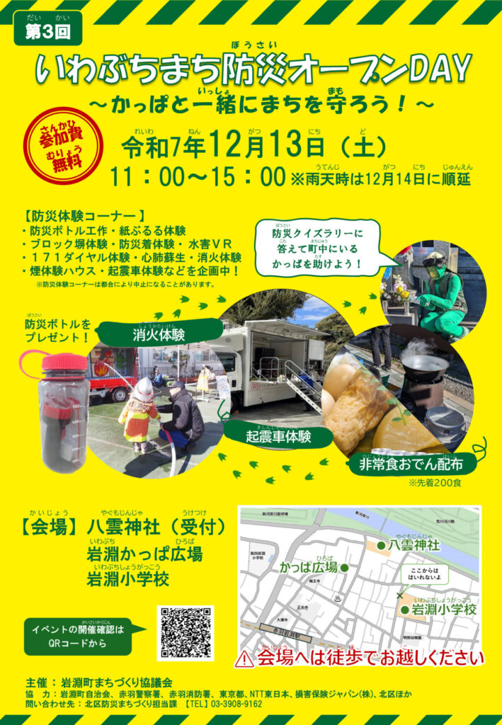 本日12月13日に赤羽の岩淵町で開催された「いわぶちまち防災オープンDAY」の様子です。