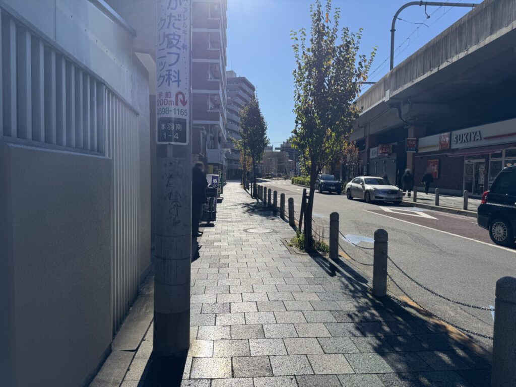 左です。斜向かいには「すき家」や「餃子の王将」があり、さらに行くと「どらっぐぱぱす 赤羽南口店」。
