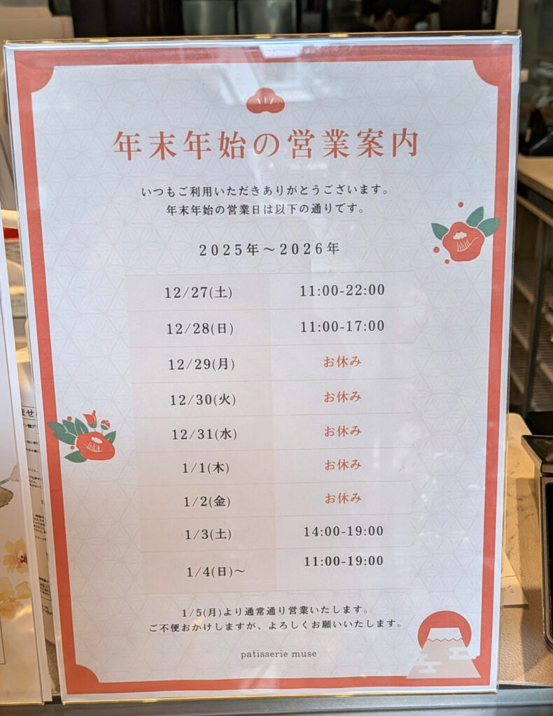 こちらはお店の年末年始の営業案内↓