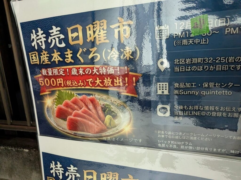前回は開始15分で完売。国産本マグロ工場直売ワンコイン市!