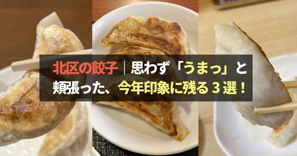 今年、北区でいろいろ食べた餃子の中で、思わず「うまっ」と頬張ってしまった、特に印象に残る3つをまとめました。