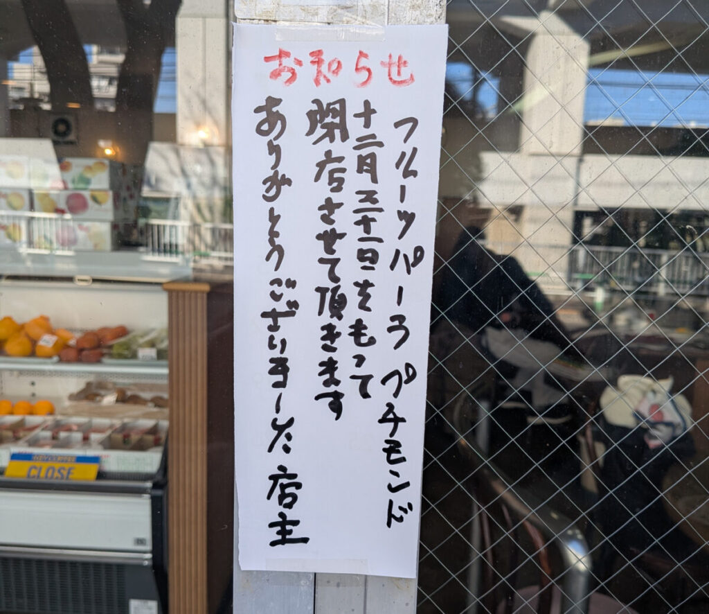 店頭に閉店の案内がでてました。