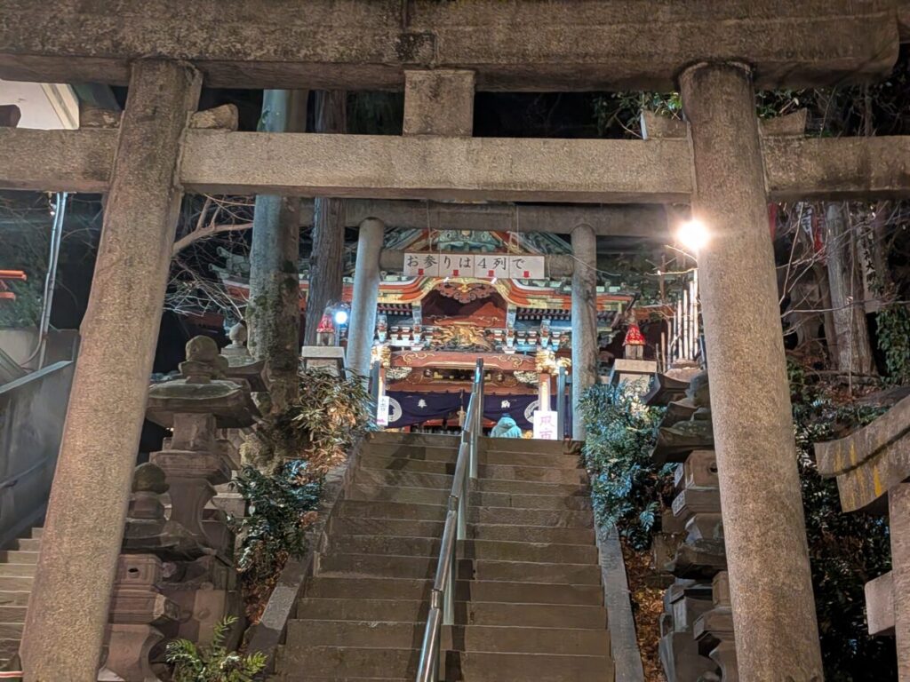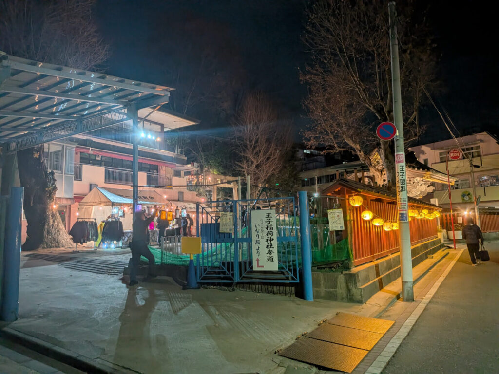 18時前後の「王子きつね村」や「権現坂から王子稲荷神社」の様子。