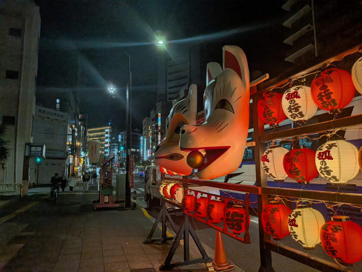 王子北本通りに人だかり!でっかい狐のお面が出現!今日はいよいよ「狐の行列」開催日! 王子の北本通りに毎年恒例大きな狐のお面が出現していましたよ!14...