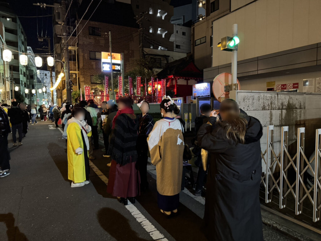 装束稲荷神社の参拝の列の様子 30名ほどでしょうか。列が出来ていました。