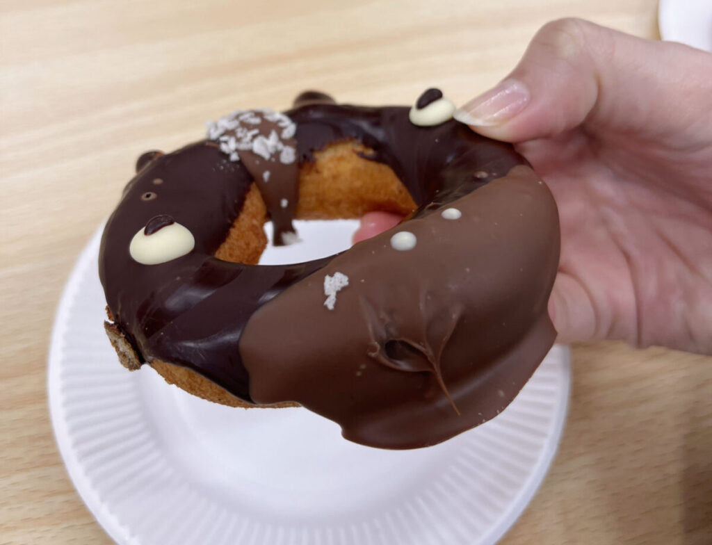 そしてビターチョコの部分はしっかりほろ苦。ドーナツもちもちっ!