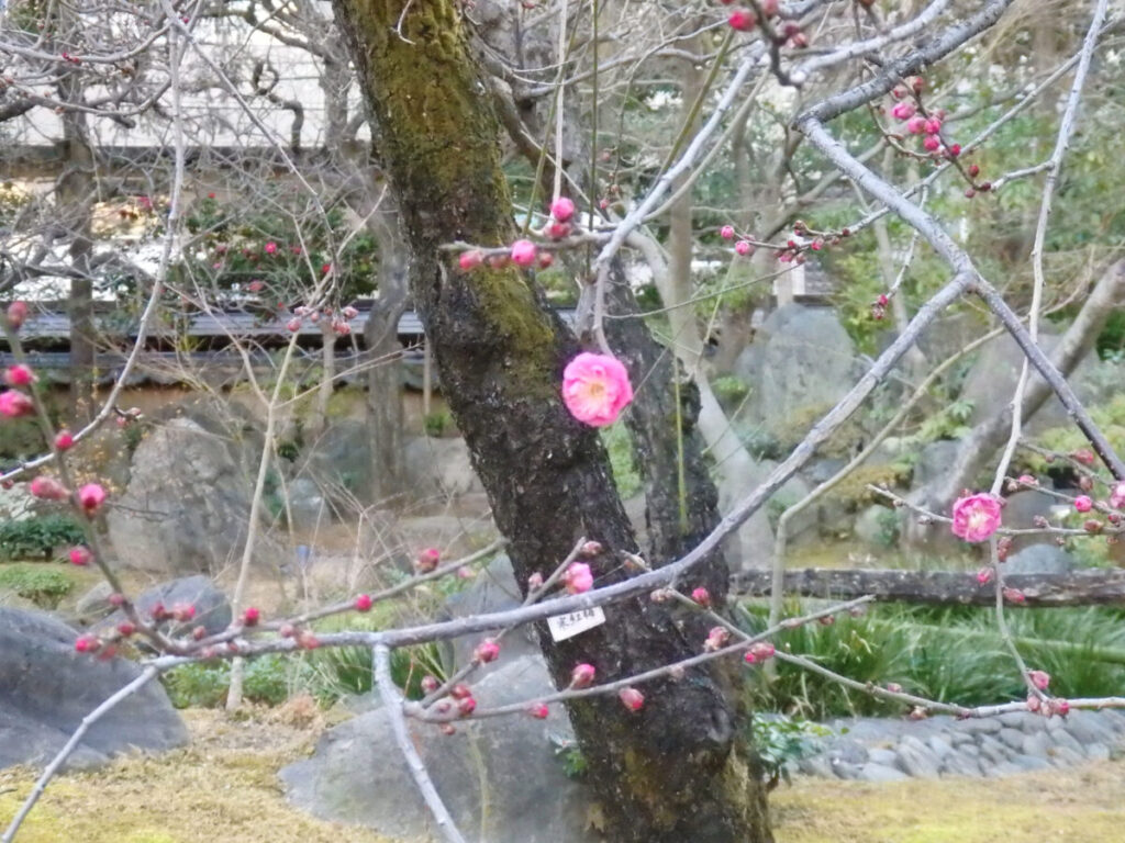 本殿に向かって左側の絵馬の横にも梅の木が。