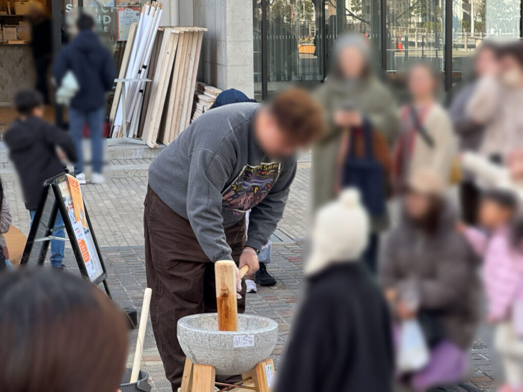 11時半から「おもちつき」が開催されるとのことで、たくさんの人が集まっていたんですね(^O^)