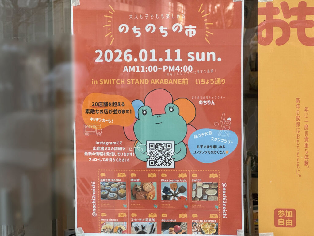 1月11日(日)赤羽台にあるSWITCH STAND AKABANE前で開催の「のちのちの市」に行ってきました!