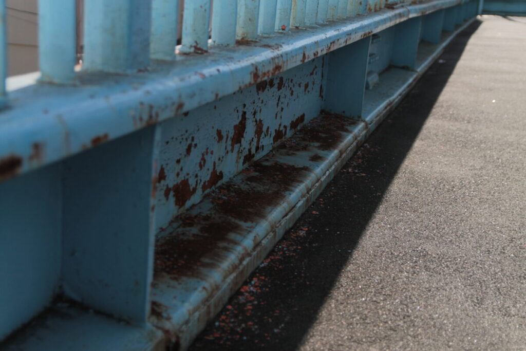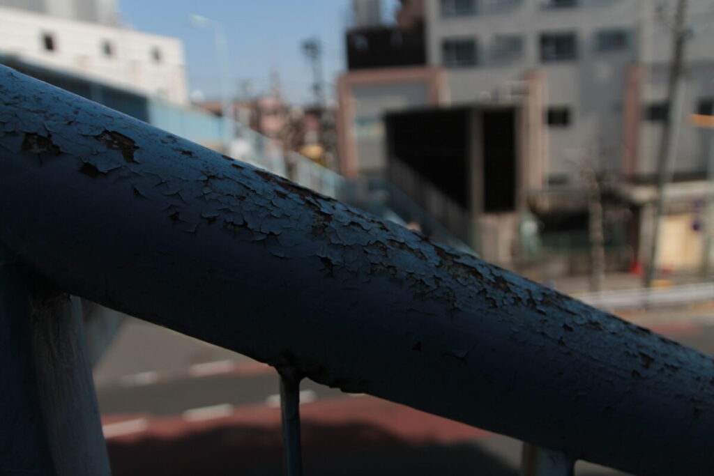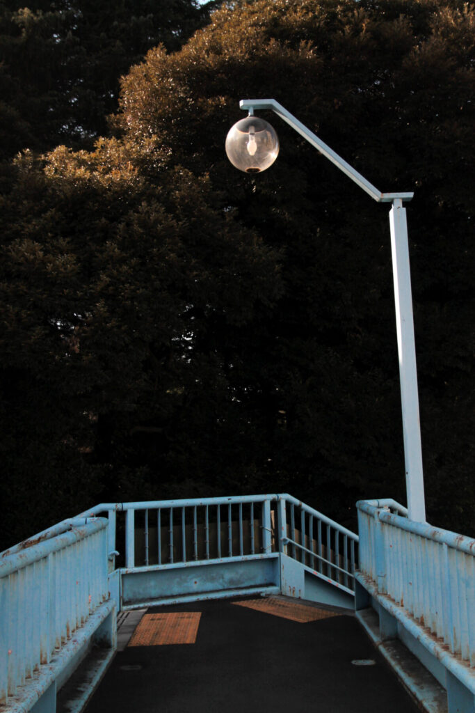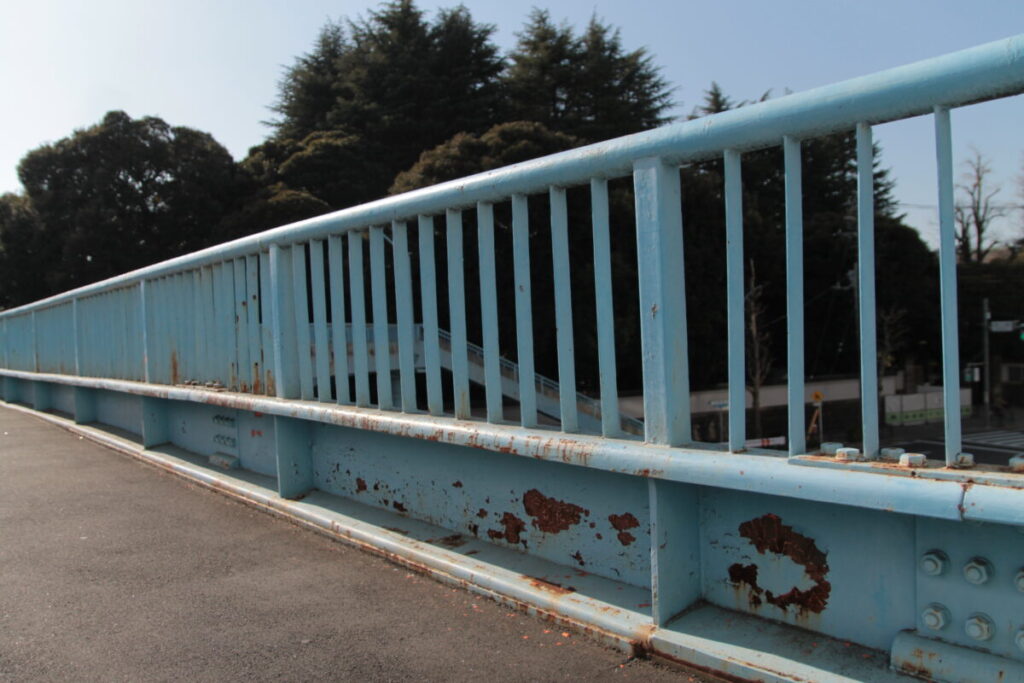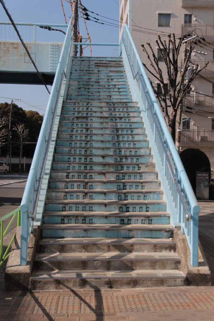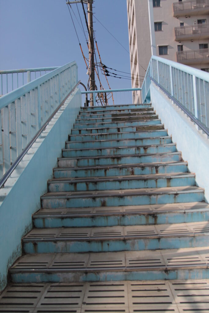 水色の歩道橋にサビれた感じがまた味があるんだ。