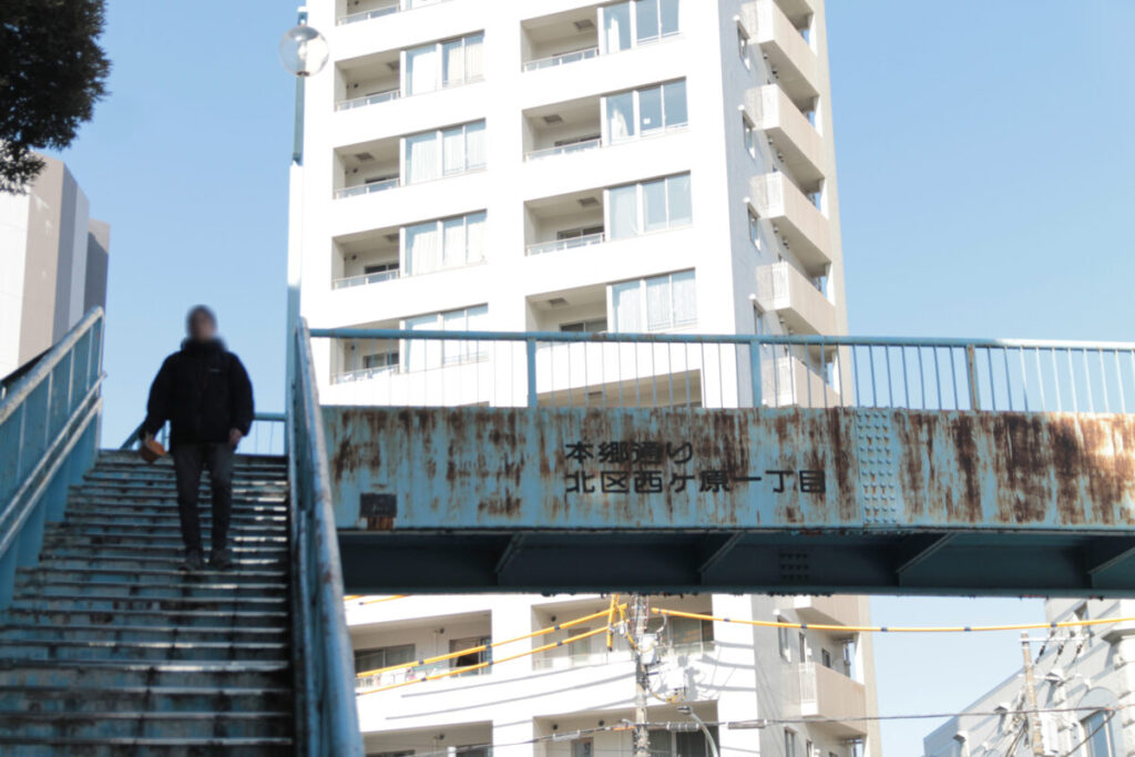 旧古河庭園の前にある「滝野川会館前歩道橋」。