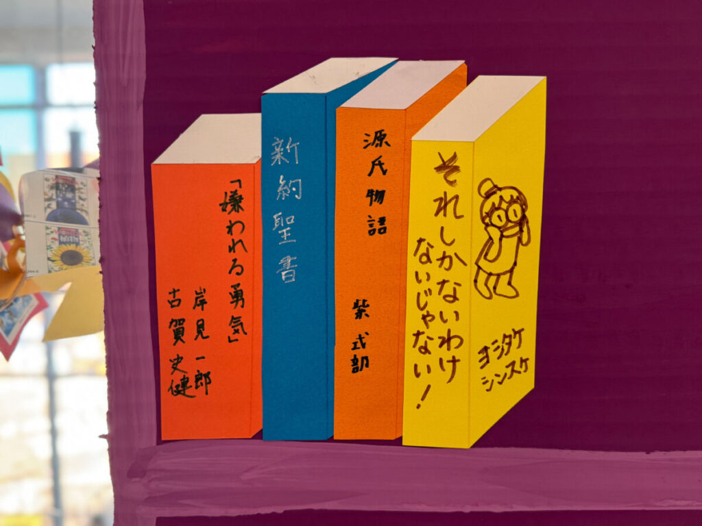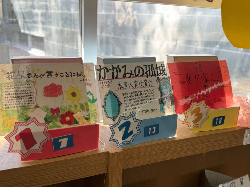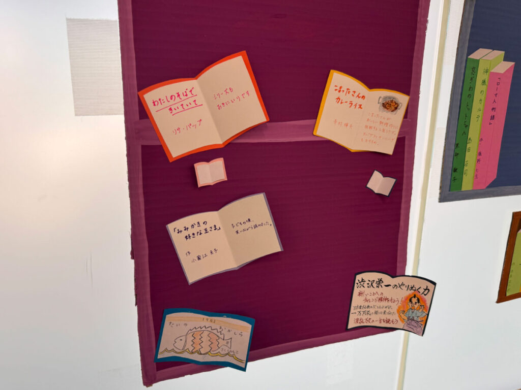近くで見てみると、本のタイトルに感想などが書いてある〜!