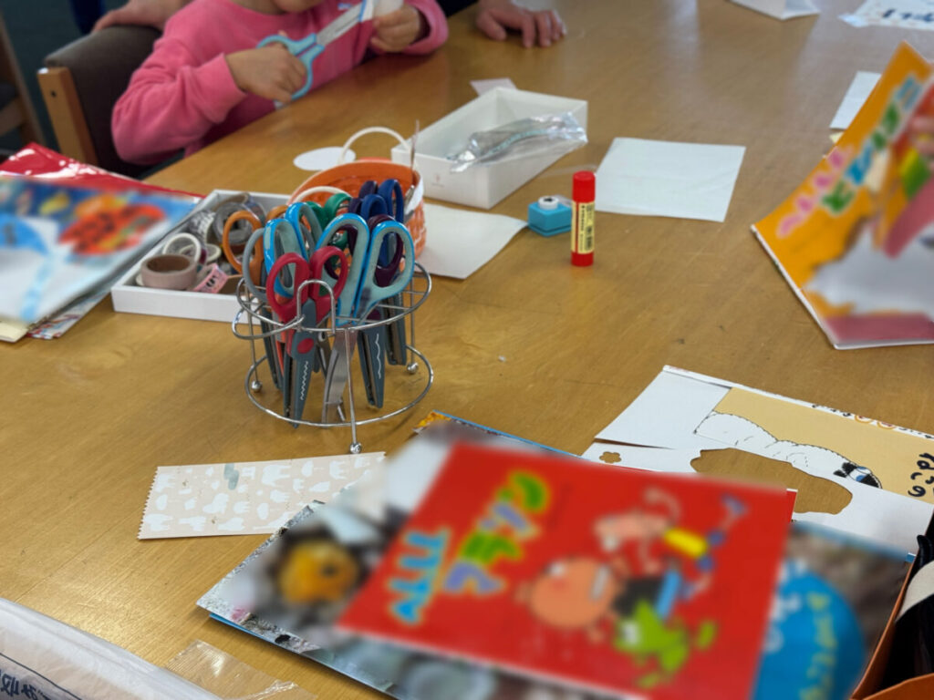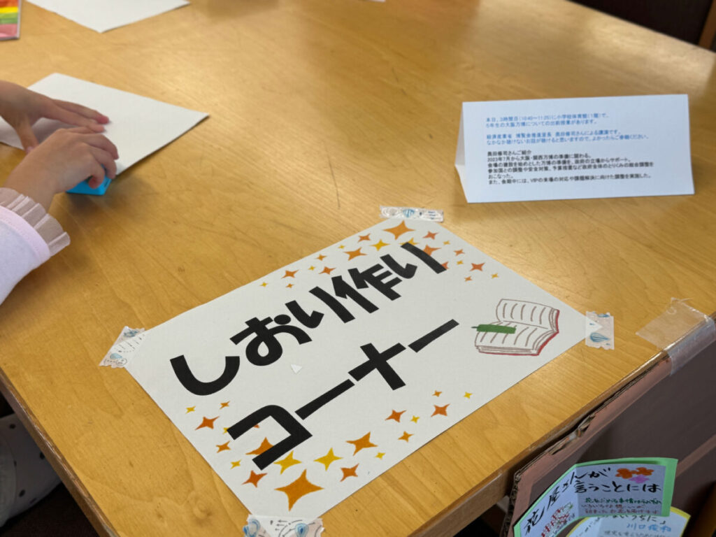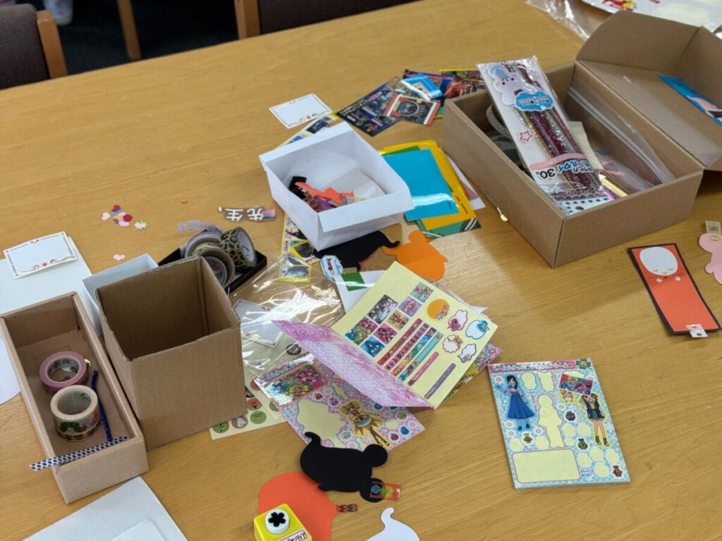 使わなくなった本の表紙や、画用紙やモールなどなどを使って自分だけのしおりが作れるんだって!