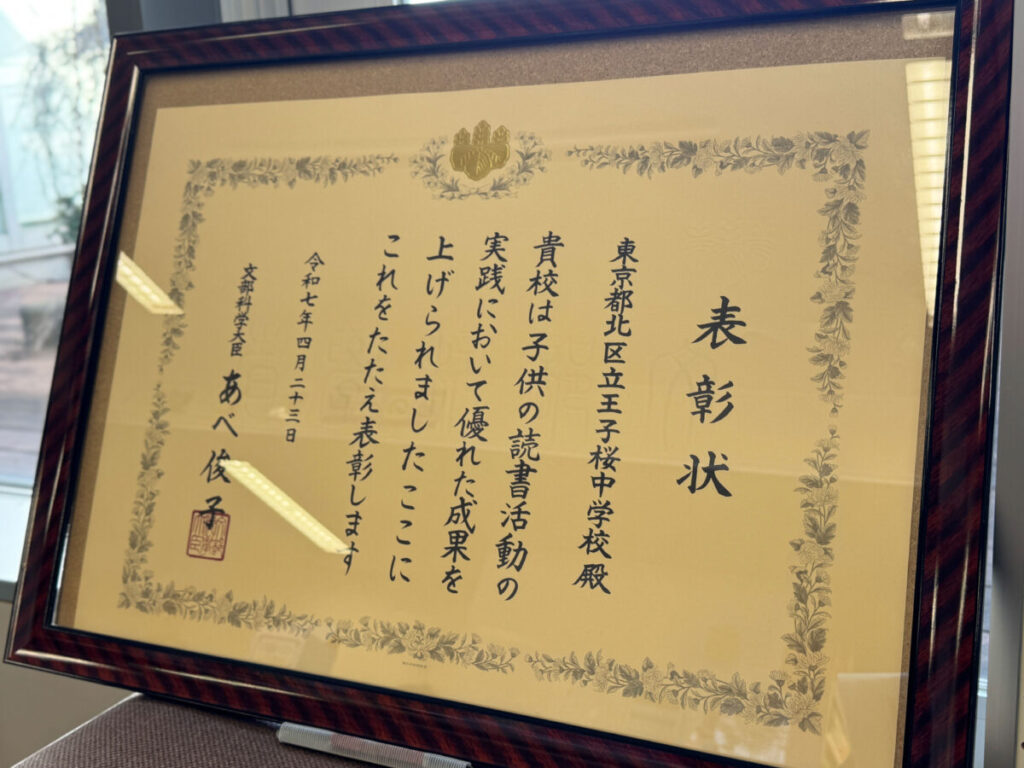 なんと王子桜中学校は、昨年4月に令和7年度「子どもの読書優秀実践校」として文部科学大臣賞を受賞されたとのこと!すご〜い!