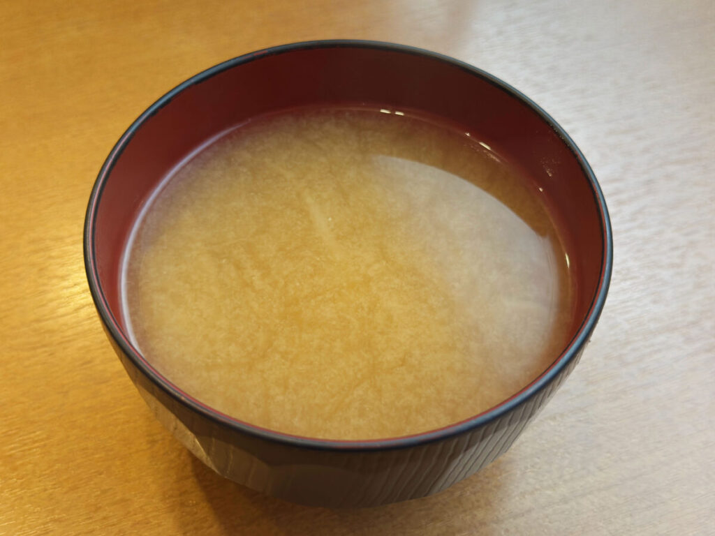 セルフサービスのお味噌汁を先にいただいちゃおうっと。