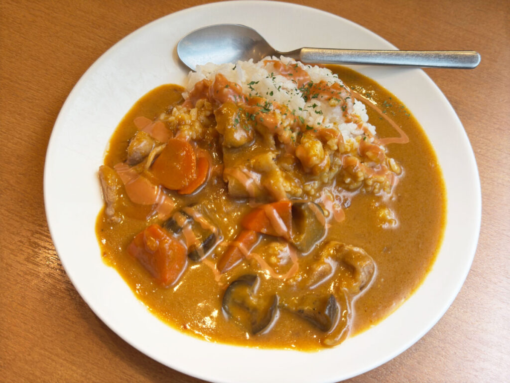 上からクリーム?がかかっていて、おしゃれなカレーじゃないですか!